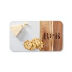 Stylish entertaining awaits you with the Marble and Acacia Cheese Board from CLV. Keep cheeses cool on the marble side of the board and display crackers, toasts or other accoutrements on the acacia side. This personalized cheese board set makes a welcome hostess gift or housewarming gift. Browse all of our personalized cheese boards to find the perfect set for your home. Free personalization always.
