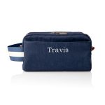 Lightweight nylon comes together with classic, striped, styling in the Nylon Dopp Kit from CLV. A zippered closure keeps items safe, while pockets provide additional storage. These toiletry bags for men are available in either blue or black. Pair with our Nylon Weekender for a complete travel set. At CLV each personalized toiletry bag for him includes free personalization.