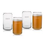 Constructed from clear glass and made into the classic soda-pop can shape, these glasses are complete with free personalization. -