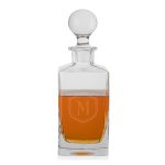 Heavy-weighted square decanter, a glass domed topper, and free personalization. -