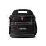 Holds up to 16 16 oz. cans, adjustable shoulder strap with attached bottle opener. -