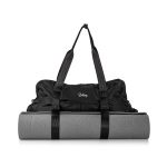 Nylon construction; front, side, interior, and exterior pockets; adjustable shoulder strap; attached yoga mat straps; free personalization. -