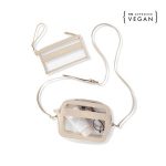 The Personalized Clear Vegan Leather Stadium Set features a crossbody bag and clear clutch. This set is the perfect solution to all those stadium and festival restrictions. Not only are both pieces in accordance with standard stadium size and color requirements, they’re also stylish enough for the everyday. **Made of cruelty free materials. Free personalization always!