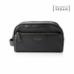The black PETA-Approved vegan leather construction of the double zipper dopp kit keeps your products safe and secure during travel. This personalized toiletry bag for him features sleek silver hardware adding an element of sophistication to the handsomely crafted dopp kit. **Each toiletry bag for him is made with cruelty free materials. Free monogramming always!