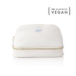 Vegan leather, metal zipper, accompanied by two sinch pouches. -