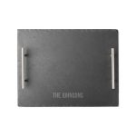 Add to your entertaining collection with the Personalized Slate Tray with Metal Handles. Featuring slate with a natural edge, this piece comes with a beautiful engraved personalization and makes a special, custom gift that will be used all year long. **Some assembly required. Free personalization always!
